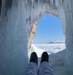 Каждый год ситуация на льду разная, где лед откроется, или наоборот перестанет быть открытым узнается только непосредственно перед выездом. Потому конкретной точки с привязкой в этот день нет, едем искать лёд. Да, находим мы его всегда, посмотрите фото. Сегодня мы можем отправиться как все к самому удаленному мысу острова Ольхон – Хобой, либо поехать в другие менее людные локации с открытым льдом. Решим это на месте. По пути встречаем все виды форм и цвета льда, а также ледовые торосы, гроты и пещеры в береговой линии острова.